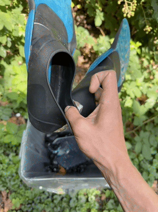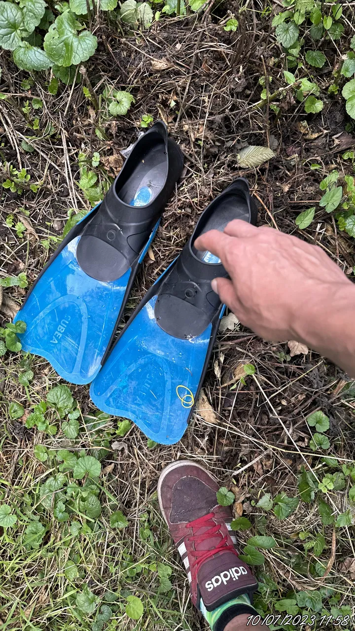 While clearing the dirt road, I stumbled upon an intriguing sight – someone had discarded their diving equipment in the forest. Amongst the gear, I found a pair of shoes that appeared to be in good condition.
