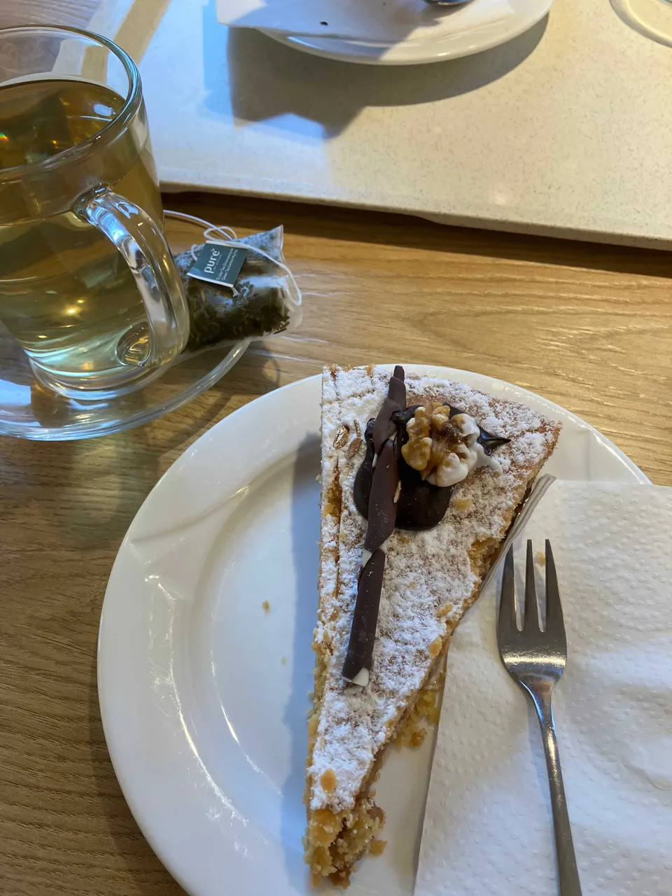 This day is started with a great piece of cake with nuts. Super sweety, that give me energy for the entire day.