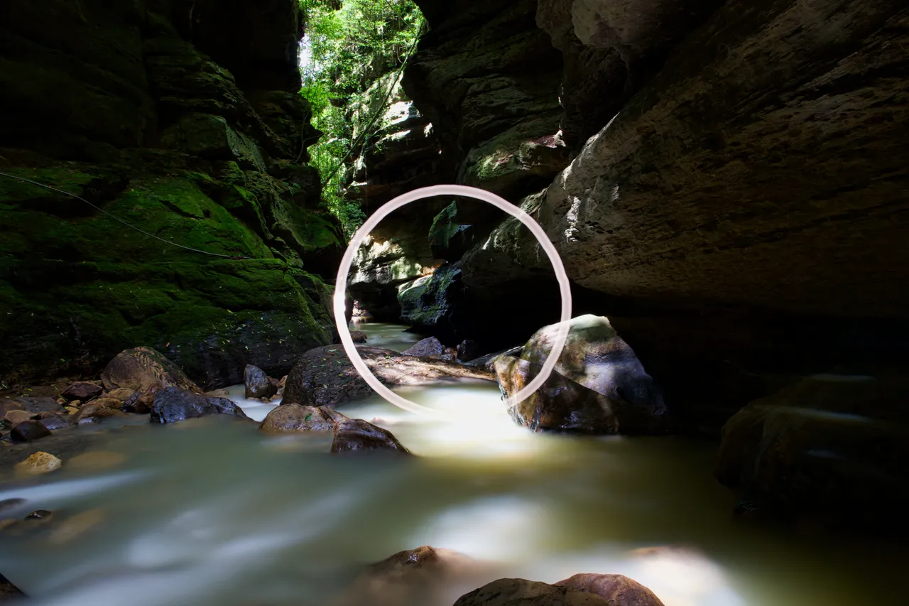 To get into the canyon, we had to wade through the river. Lazaro is the owner of the land on which the canyon is located. He gave us instructions on the best way to get in. If you walked along the right edge of the water, it was 1 metre deep at its deepest point. Two steps to the left and it was already 2.5 metres deep. So we carefully climbed up the river at the edge. I held the tripod in my hand and had the equipment in my backpack. I was dressed in swimming trunks, slippers and a hooded jacket, as it was relatively cold at this spot. I show the whole spectacle as a video at the end of the post.