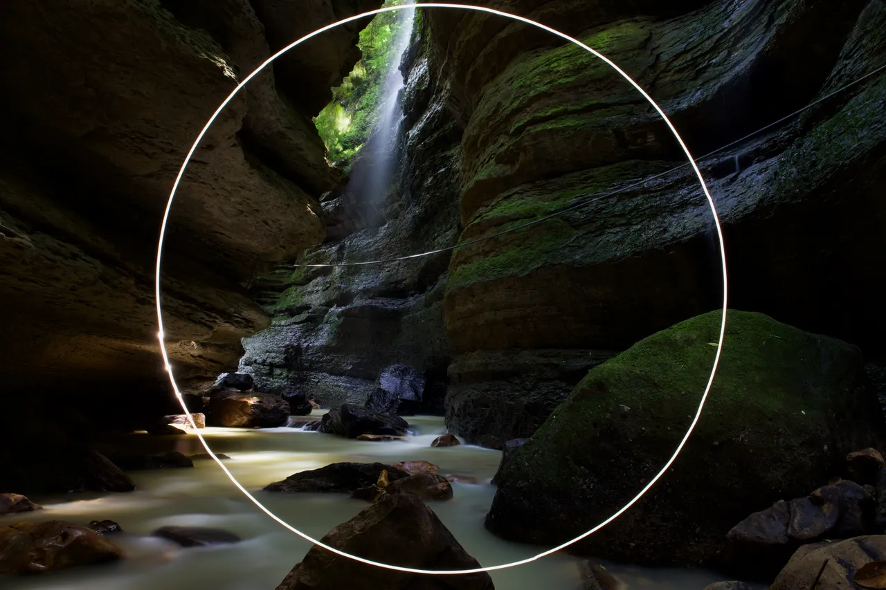 We had rented a house nearby in the hope of being able to do a photo session with light painting at night. However, a first visit showed that this project was not feasible for us. After a rainy October, the river was carrying too much water. What's more, the water was cloudy after the rain, so you couldn't see where you were stepping. That's why I decided on a light painting in daylight.