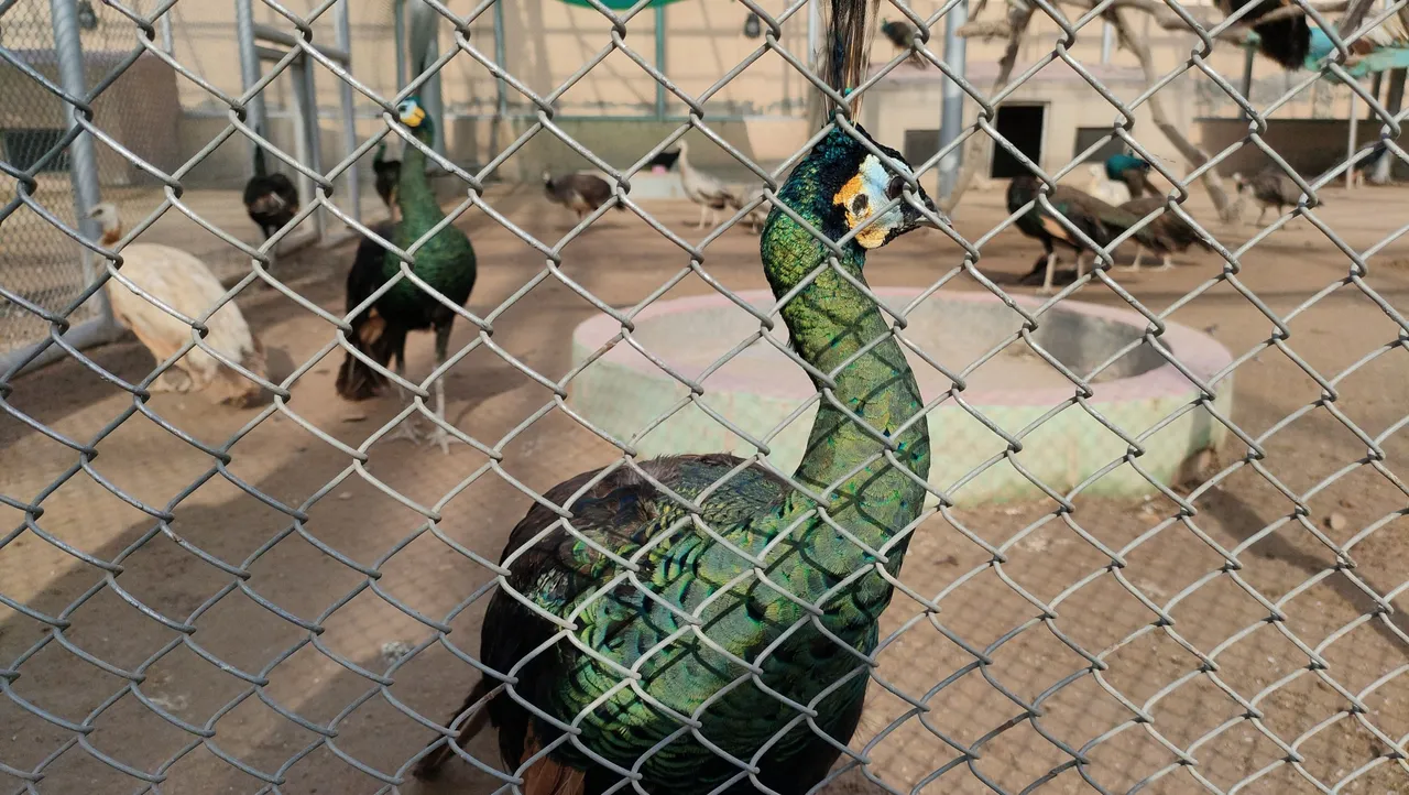 Then after walking a little we went a little further and we could see the peacocks and the peacocks were very much inside the cage. They were also photographed but we were not having good luck with them not opening their wings because they look so beautiful when they are open.