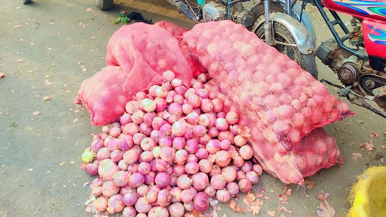 Here, if someone wants to buy onions, they will either get a full sack or half a sack, and here people are standing and bidding that I will buy as many as the person puts the highest rate. Goods are given to.