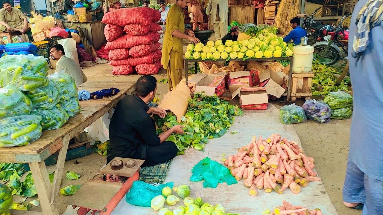 The main purpose of going here was that the vegetables here are very fresh and people take them home and all these things that are vegetables are brought from other cities by big trucks and This is the biggest market in Multan and the small and big shopkeepers who are there take it from here to sell.