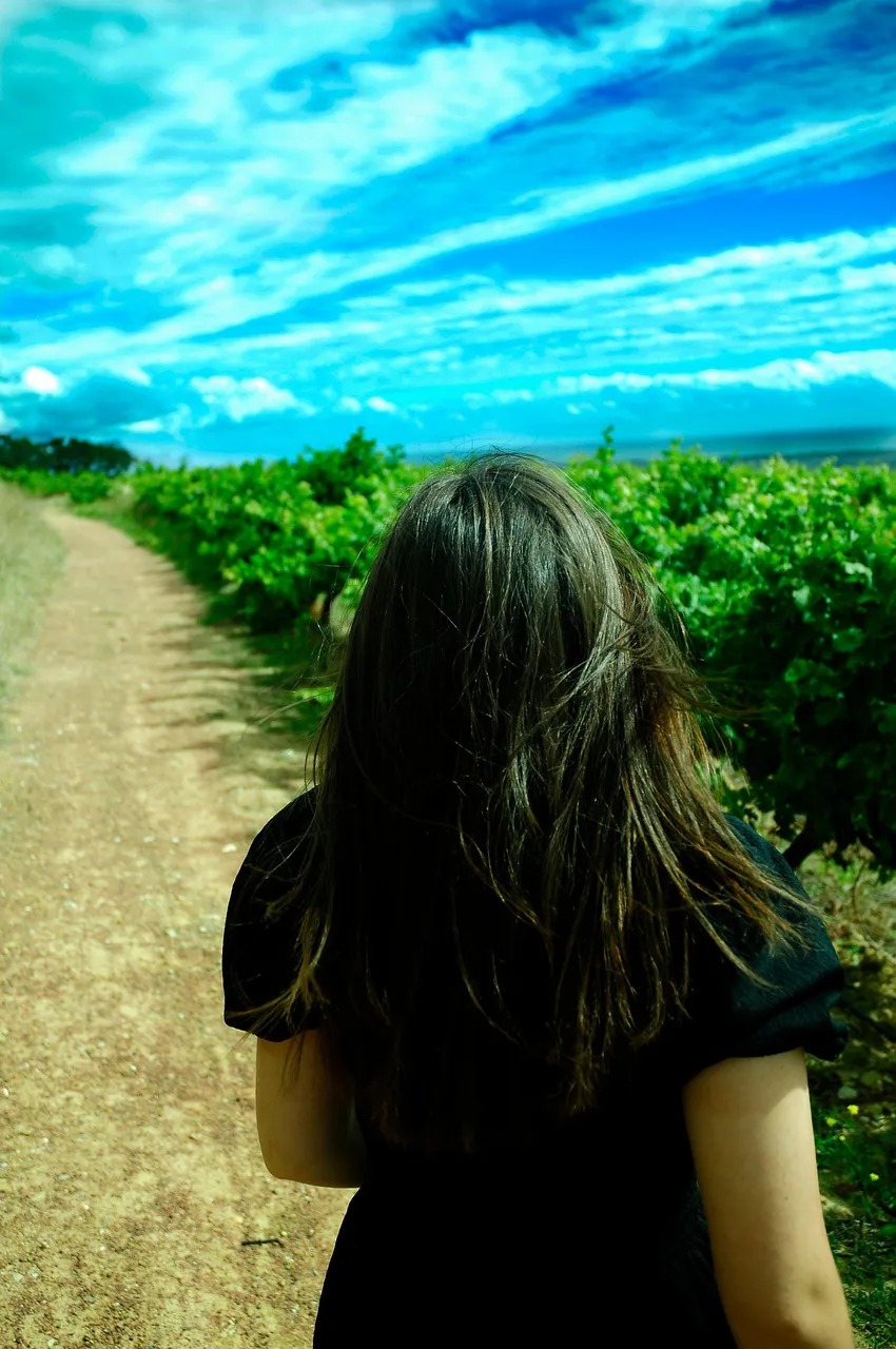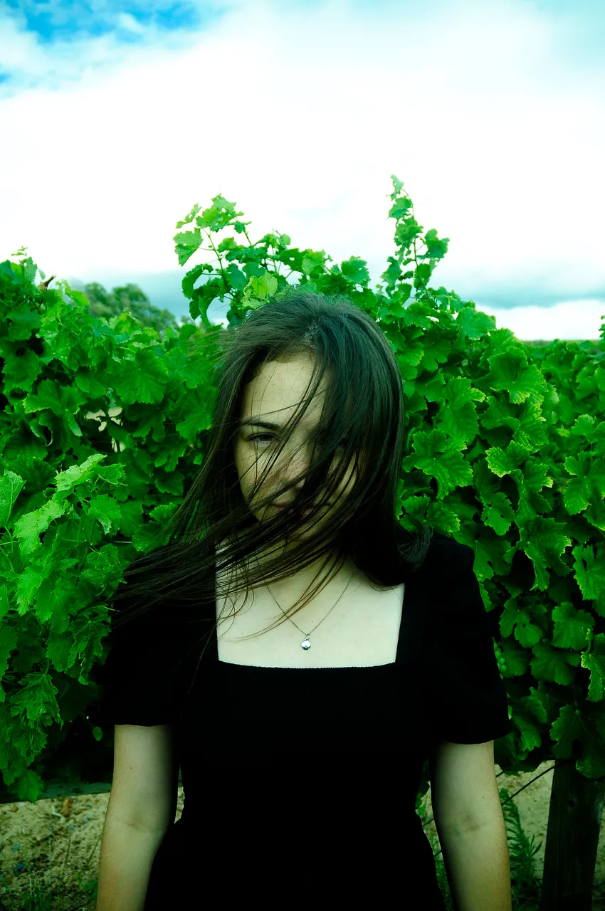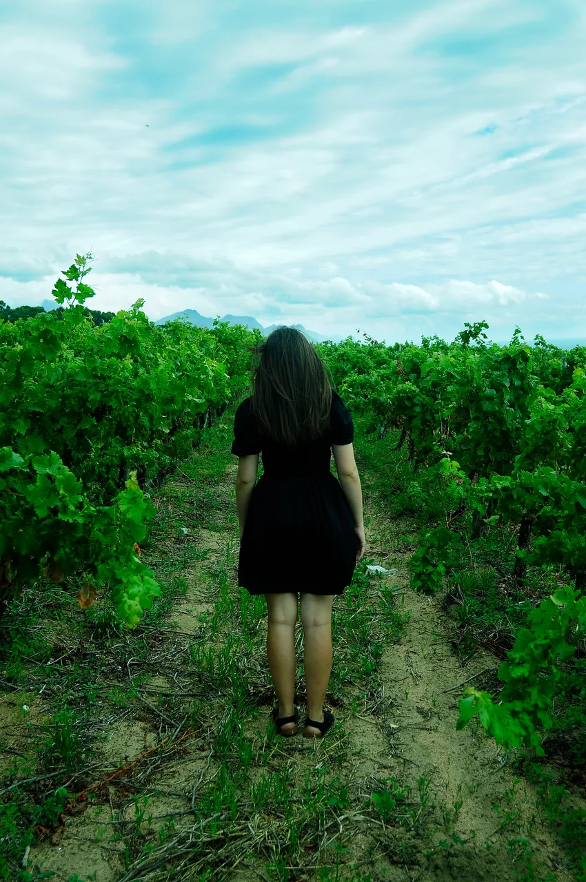 I live close to a vineyard in which I walk and jog from time to time. I also have taken various photographs there which I shared here as well. It is a magical place where various local people come to walk their dogs, have dates with their loved ones, or merely to stand with a glass of wine in their hand to look at the sunset. I thought that this would be the perfect place to have a photoshoot with my girlfriend, @urban.scout. I also took her there on a date.