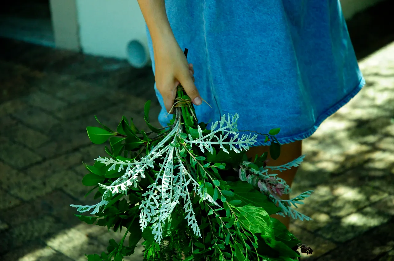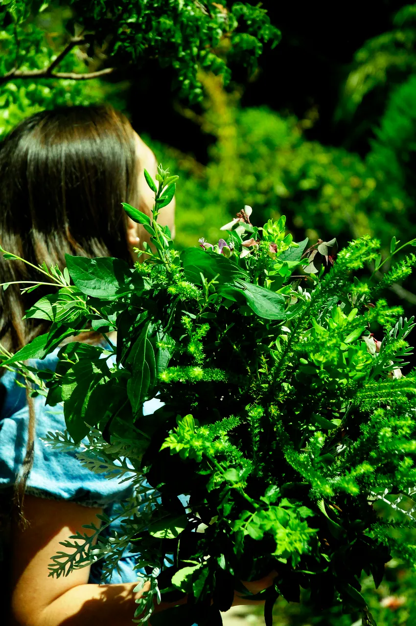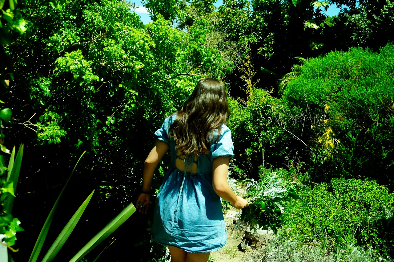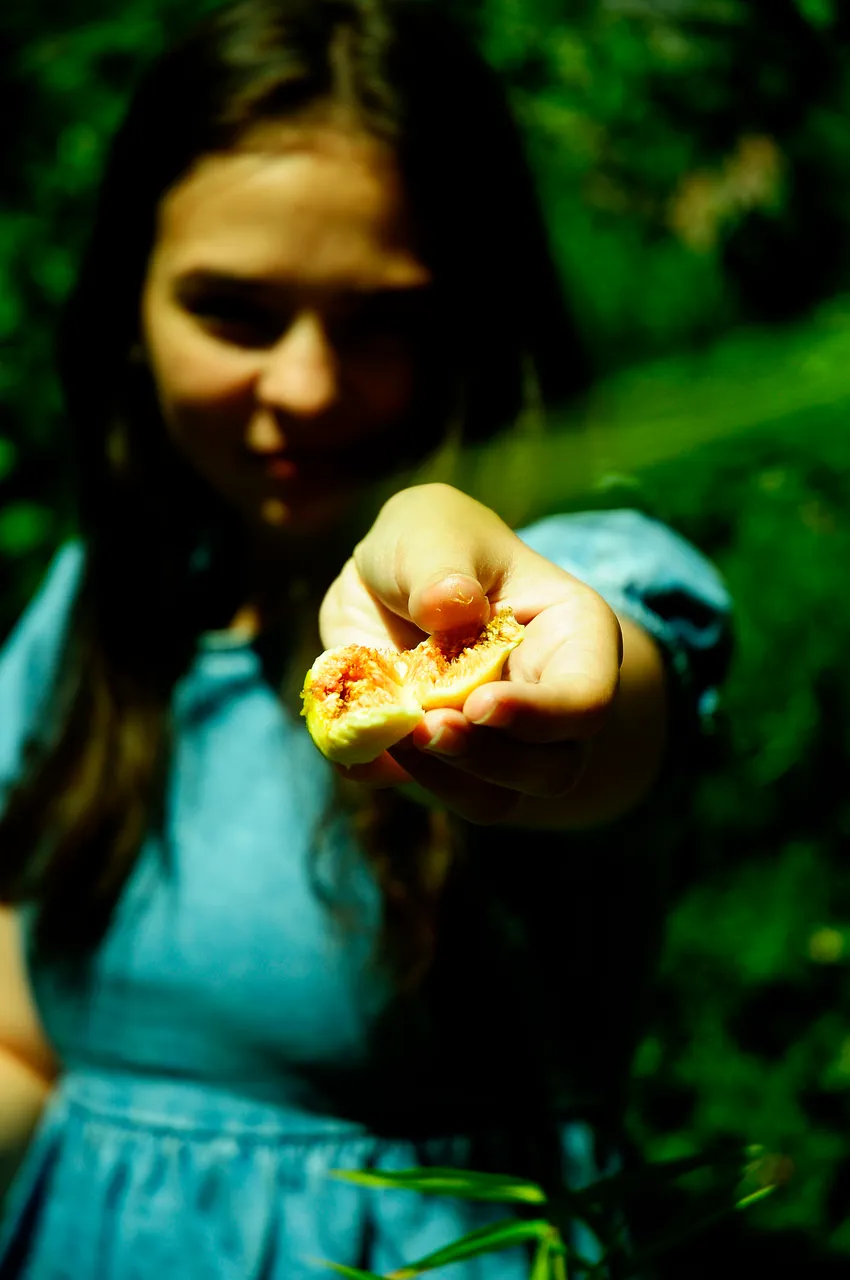 I found the girl hidden in a fig. She covered herself with the smallest of flowers. I could not help myself to take a couple of photographs of this intimate moment in which she picked herself flowers and figs. I now share with you to watch with me how she elegantly moved through the garden, picking flowers, picking figs.