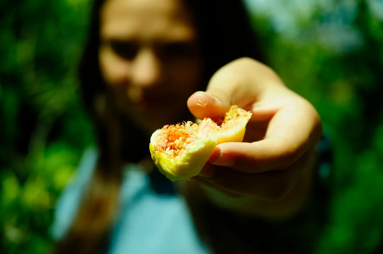My fingers run over the veins; soft flesh. I push my fingers deeper into the soft flesh; honey drips down my fingers. I feel a euphoric burst of energy run through my body as the fig drips down my hands; its seeds spread over the ground. New plants immediately sprout magically where I stand now in a forest of her fruits.