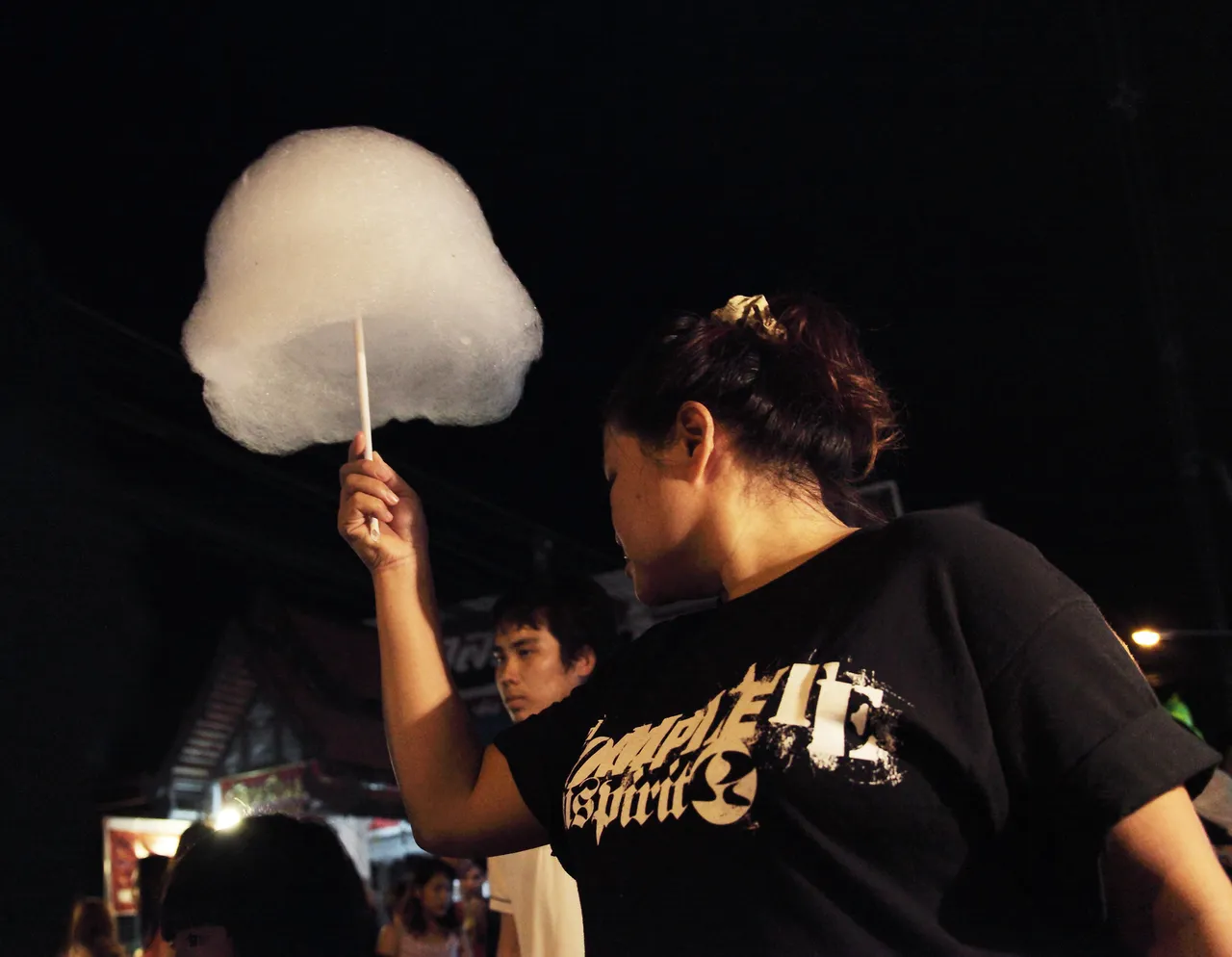 Fly the Floss - not the easiest food to eat in a crowded market and I bet it sometimes ends up in somebody's hair. Or could it actually be a jellyfish?