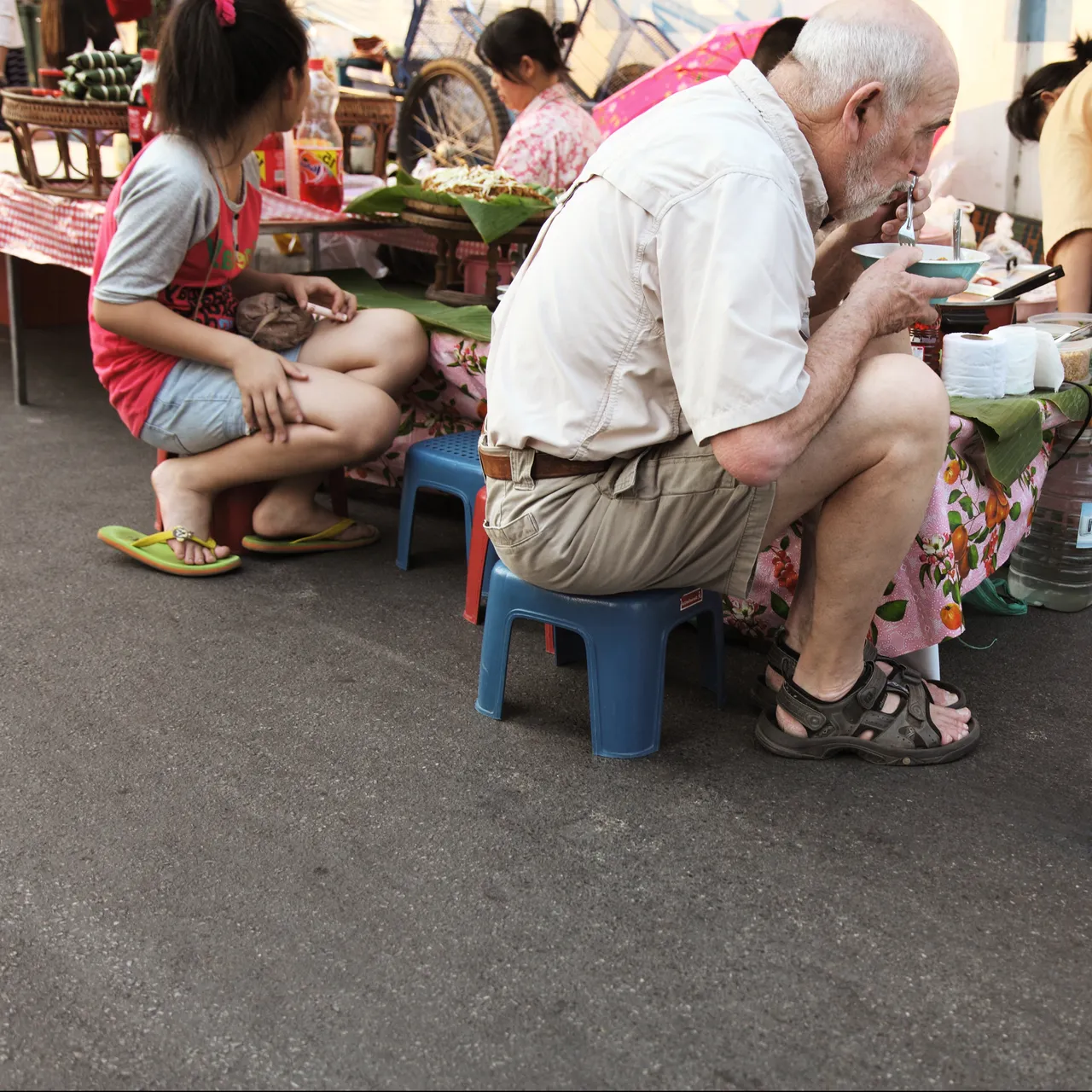 Back To School - I think a lot of tourists would struggle to cope with these tiny little stools. Full marks to this guy for his street-level eating.
