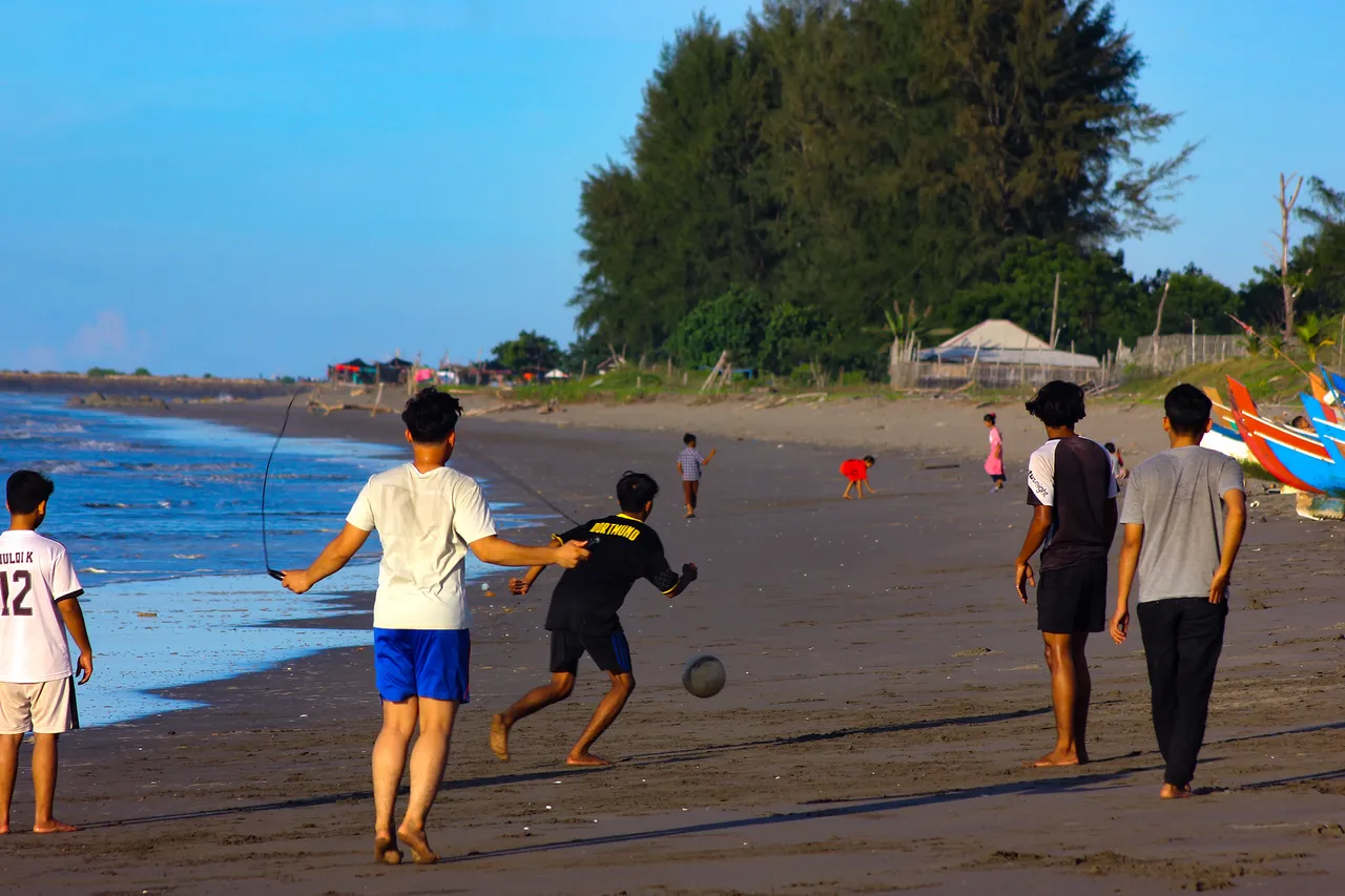 On Wednesday 27 September 2023, I want to show again the photographic images that I have prepared. Today there are two photography moments that I want to show with my friends in this beloved community. The first is the result of photography that I took on the beach and there I saw many people who were on the beach both exercising and also enjoying the beauty of the beach. Then the second image display is a picture of my nephew playing on the terrace of the house. At that time they seemed very happy playing together on the terrace of the house. OK, friends, let's look at the pictures that I have prepared.
