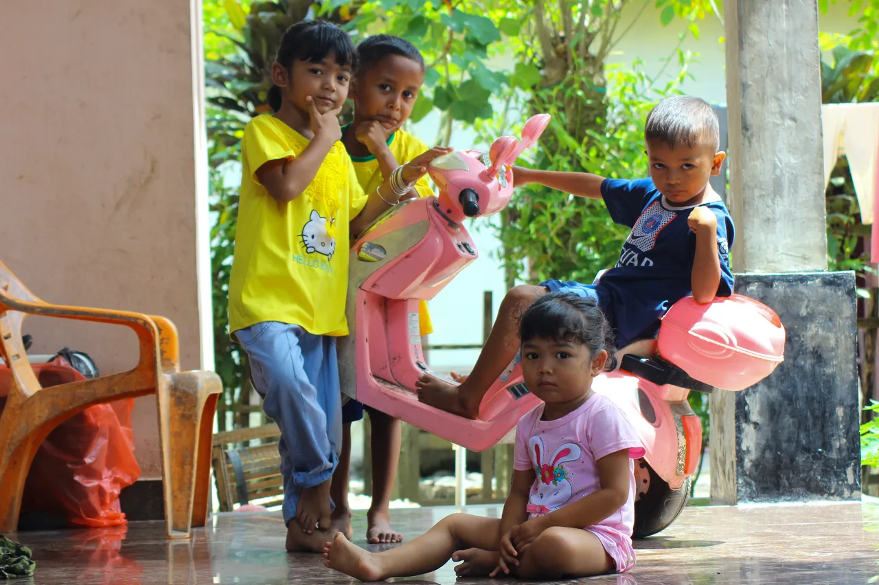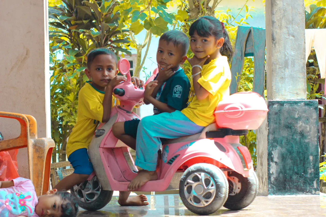 The second display moment is a picture of my nephews playing together on the terrace of the house. They have a toy motorbike and they usually play with their friends on that motorbike and it is also quite fun for them. I felt like visiting their house. I saw them playing and I took out the camera to take pictures of them. I want them to be quite close and I also often entertain them with the camera and also entertain them with other things.