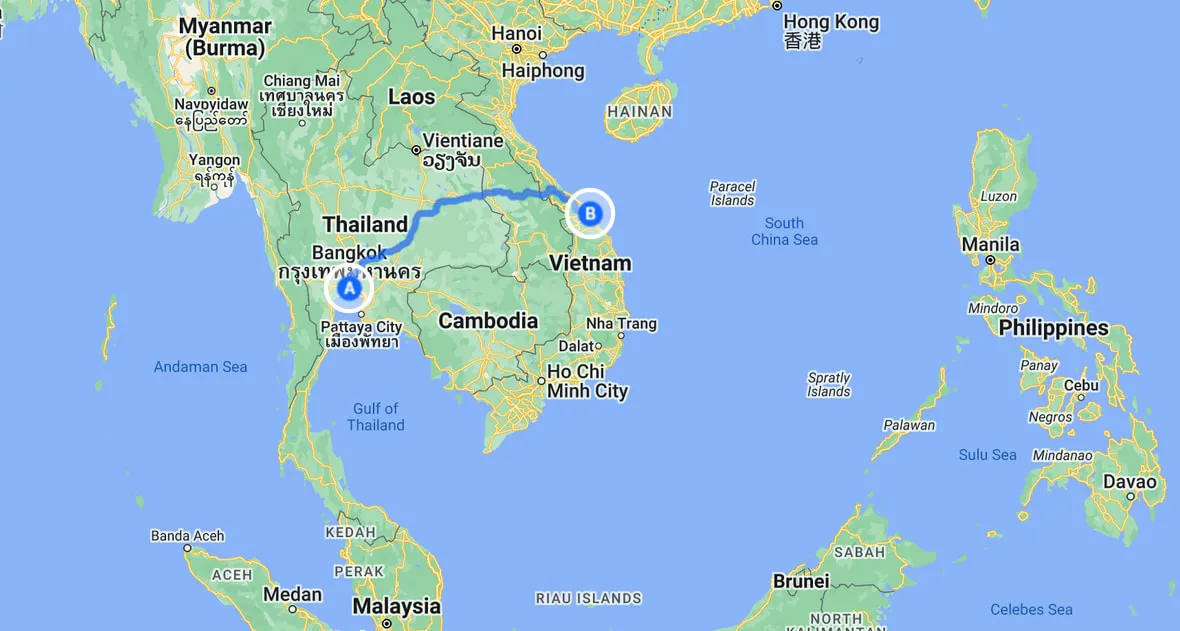 A night bus from Bangkok to Thai border city Mukdahan (17$), then crossing the Thai-Lao border on a bus over the Mekong River (4$), so wide!, then a night in Laotian city Savannakhet (3.3$ for a room), and a 9-hour bus trip to Danang next day (23$).