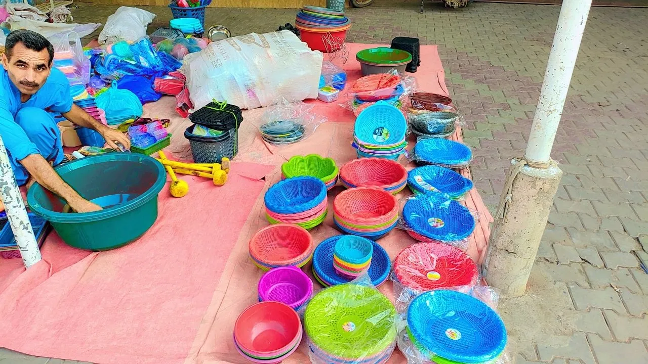Here there is also a special variety of plastic utensils which are used especially inside the house for eating food etc. So here people buy them and as you can see in the picture Here, the entire Friday market is spread over the road with a cloth.