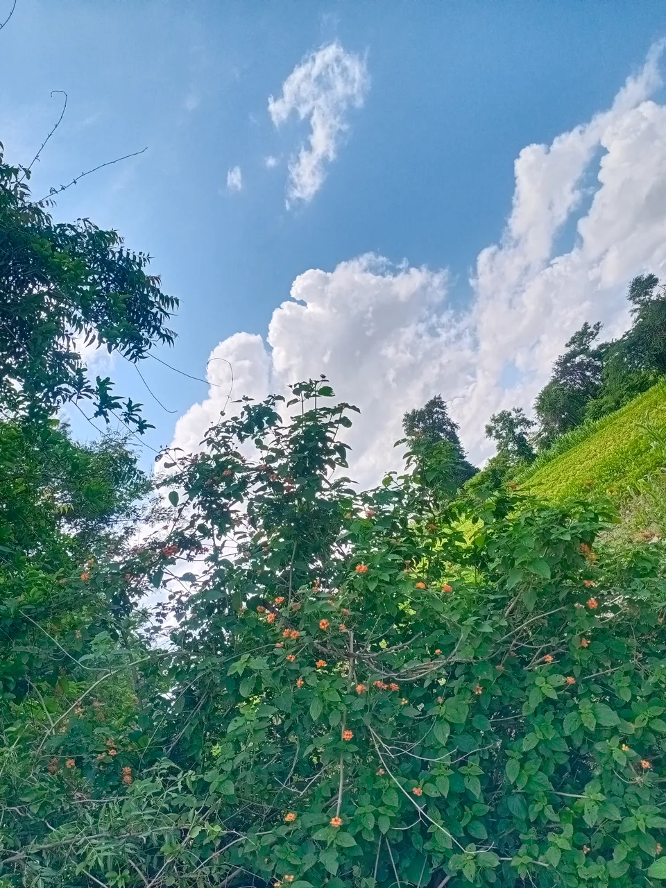 The nature of the countryside is lush with the beauty of wild flowers and trees.