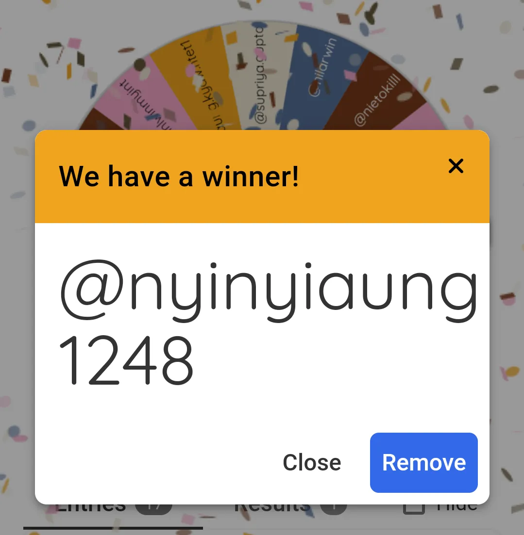 These usernames were typed in https://wheelofnames.com/ Spin Chart and I spinned.