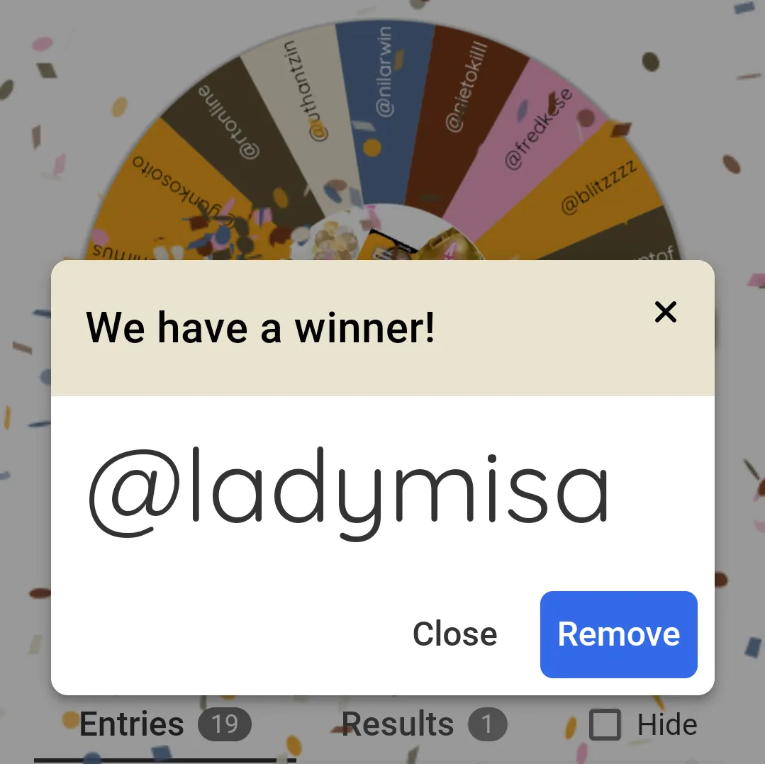 These usernames were typed in https://wheelofnames.com/ Spin Chart and I spinned.