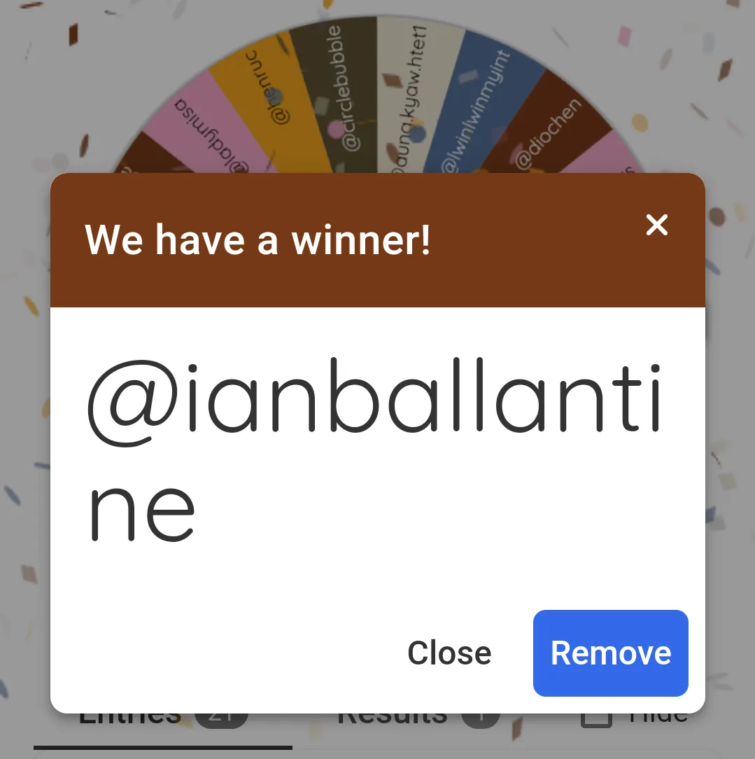 These usernames were typed in https://wheelofnames.com/ Spin Chart and I spinned.