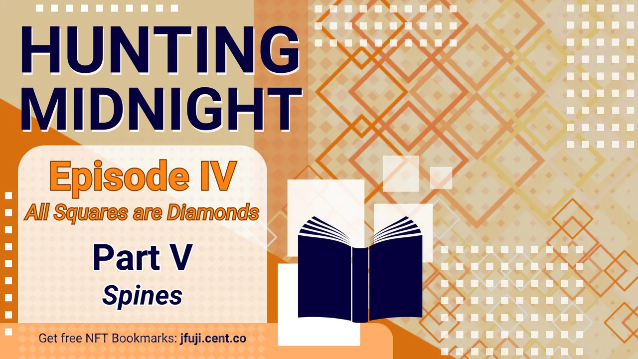 I was less concerned with the books, and more concerned with the lack of one book. There was only one gap in those dreary, dusty titles, and I knew the shape and size of it as sure as I knew that this whole situation stunk.