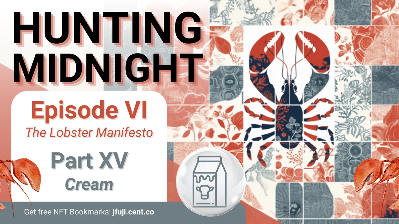 “Long lunch. By night and by lunch I am here to represent the interests of Lobsters.” She motions puckered lips in the direction of the cage.