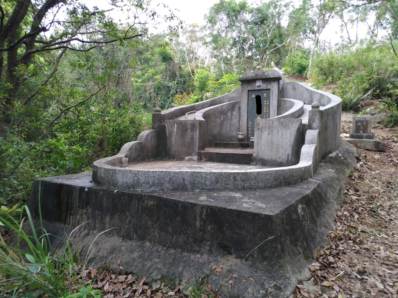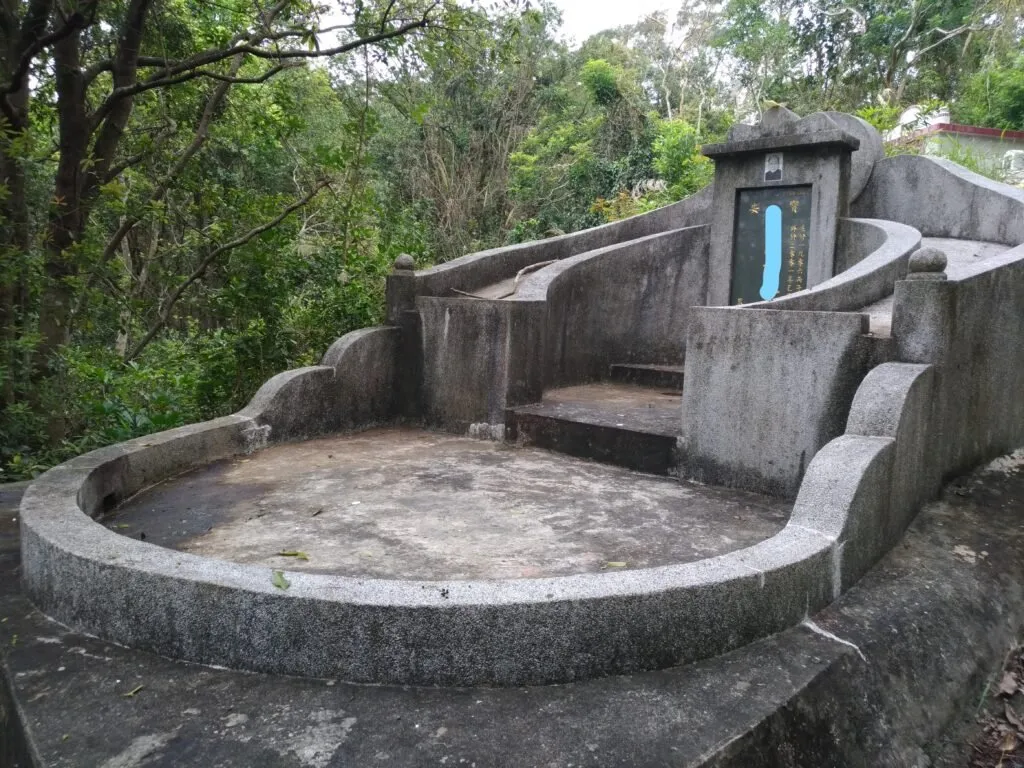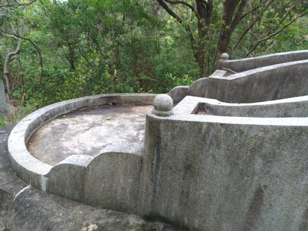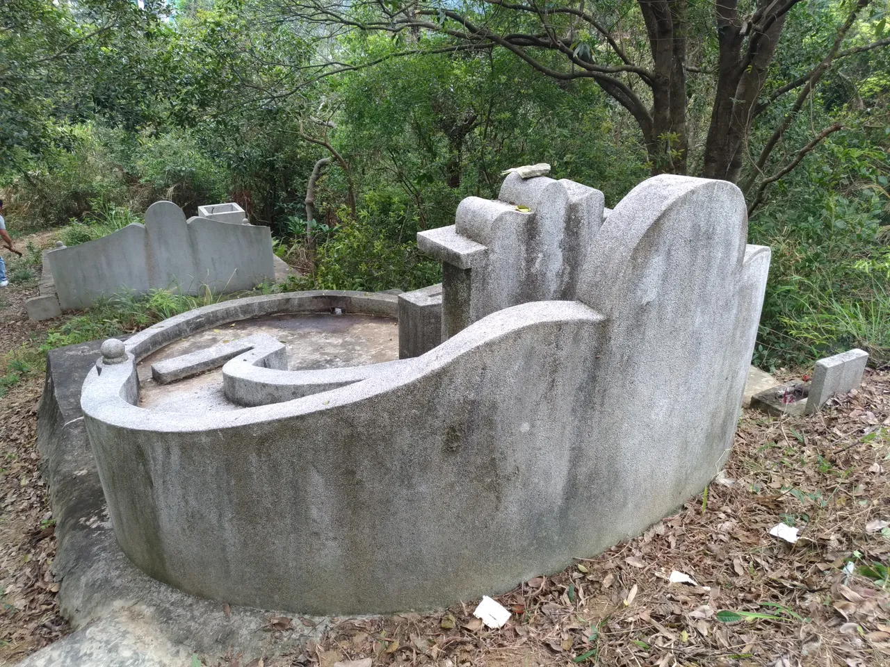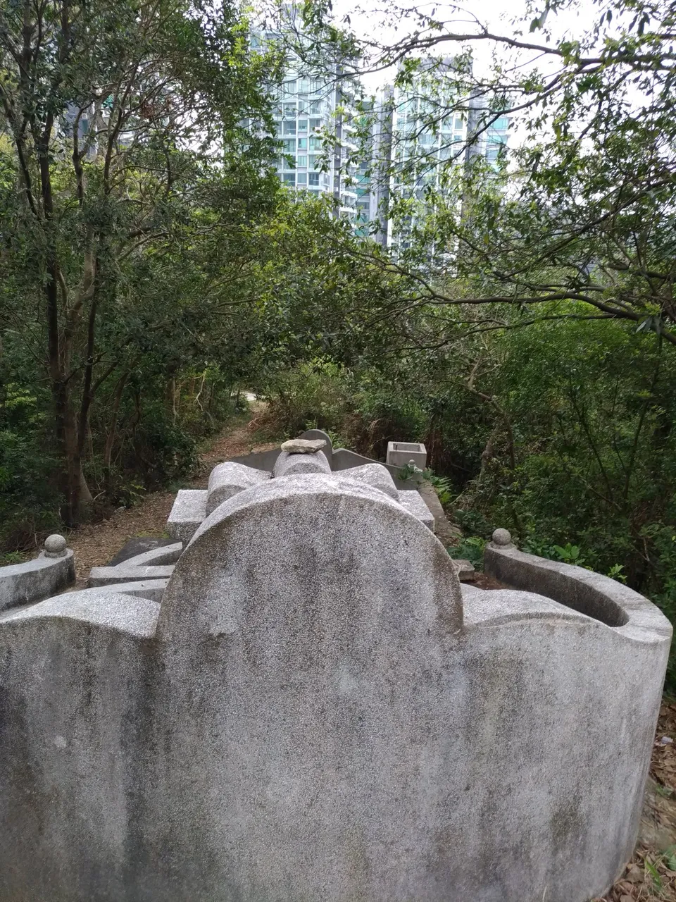 And here's my gran's tomb, a typical Chinese style tomb, at least in Hong Kong. There are lots of trees around and you'll see all the leaves on the ground, but not a single one on gran's tomb. That's what tomb sweeping is all about, a bit like spring cleaning. My siblings and I must have spent a good 15 to 20 minutes sweeping the tomb, gran would have been proud of us.