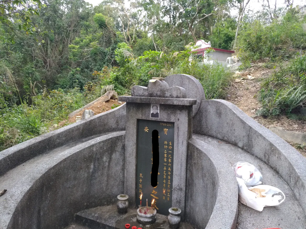 Traditionally we always say people are buried up in the mountains but in fact it's a hill and is about 5 minutes walk from the main road. In recent years these new high rise eyesore flats have been built in our village, so now we have to walk through their rubbish depot first before we can get to the foot of the hill.