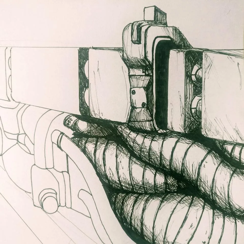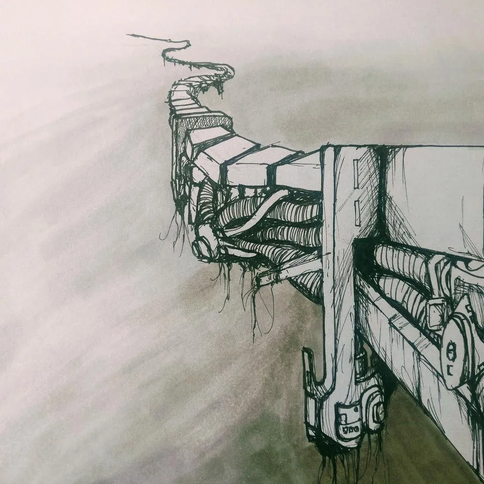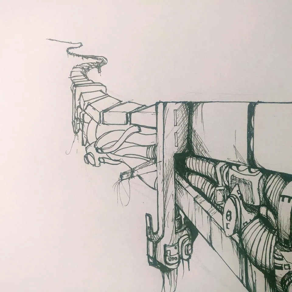 In this drawing, I tried for the first time that put all the shading in the background but none in the object itself. Gave the overall illustration that the bridge is floating in the air surrounded by sea of mist.