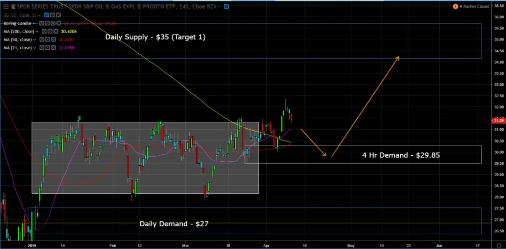 So one way to slice into the trade to go long is to buy price on a pull back to the 4 hr demand zone with the target remaining at $35 which would still offer a Reward:Risk of at least 3 to 1.