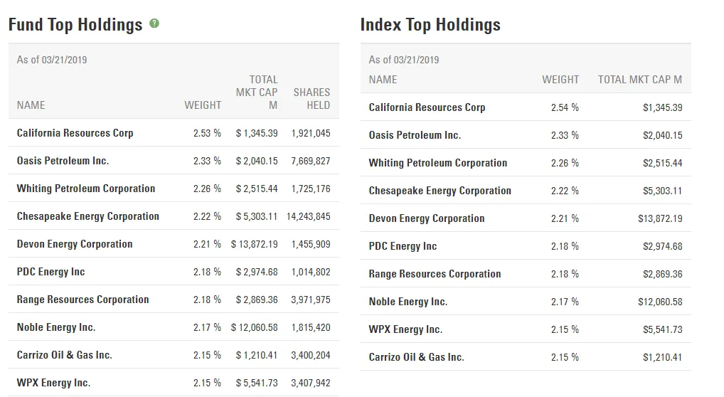 The top holdings of XOP include: