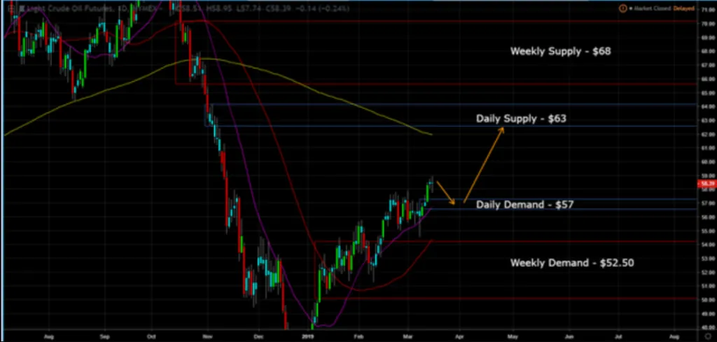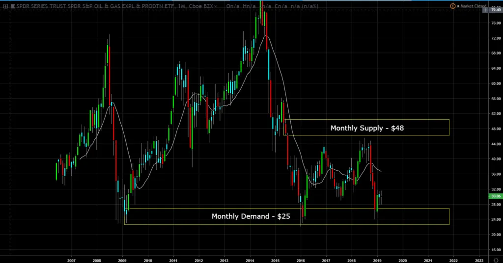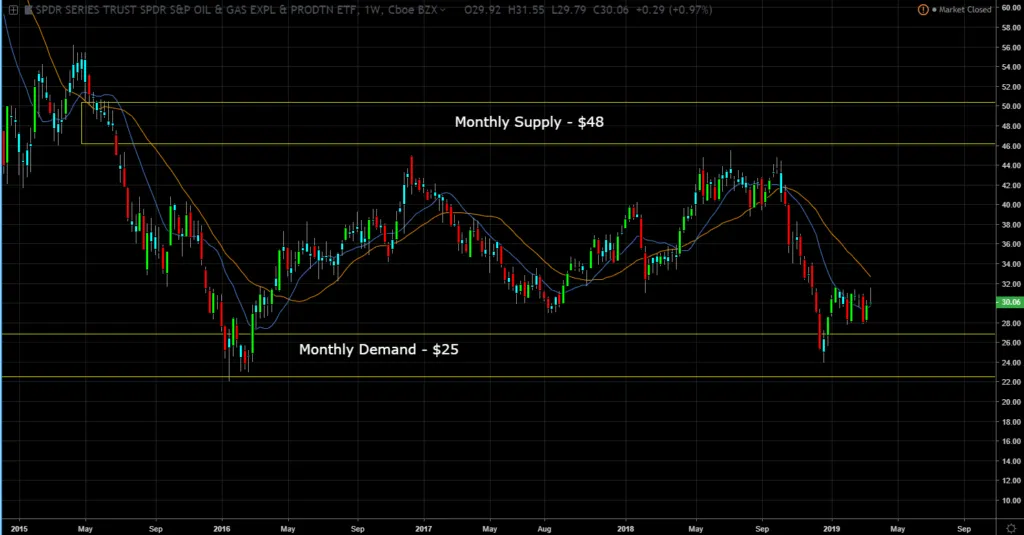 Monthly Chart (Curve Time Frame) - monthly supply is $48 and monthly demand is $25.