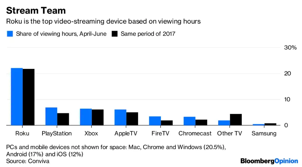 About 10% of U.S. TV viewers aged 18 to 34 are now on Roku and 10 million of its users do not have a linear TV bundles.