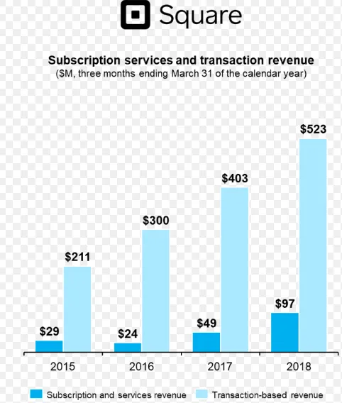 Square is starting to displace traditional money management and banking services through their services like payroll management, invoicing, and business loans from Square Capital. For example, their new Square card for merchants gives sellers immediate access to cash after a sale. Other services include, Instant Deposit, Cash Card and Caviar which have been among the largest contributors to growth of their subscription and services revenue. Thus, it should be no surprise that the last quarter marked the company's sixth consecutive quarter of accelerating revenue growth thanks to subscription services and transaction revenue.
