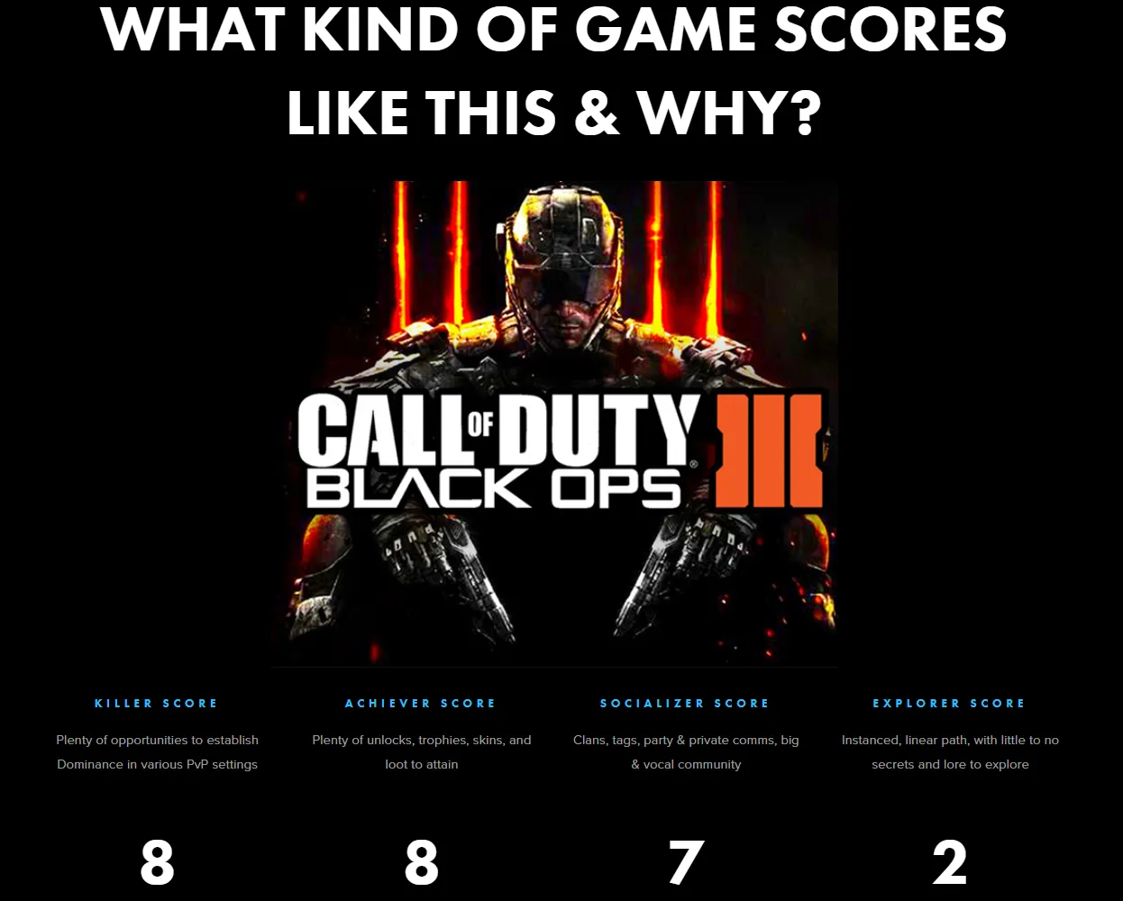 If you want to get a great in-depth breakdown of Bartle's Taxonomy, I'd suggest checking out this vid by Extra Credits on YouTube:
