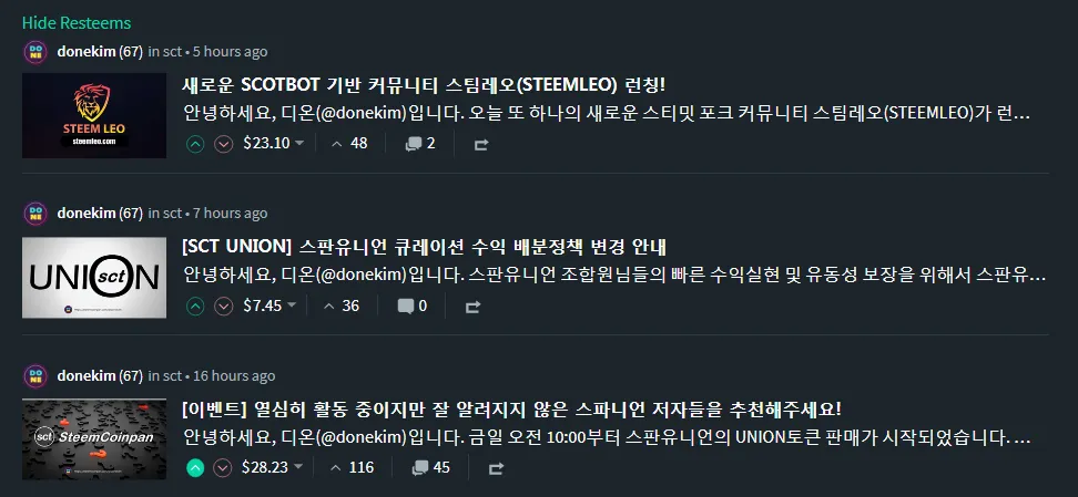 그래서 sct보팅은 되지 않았습니다.(@jjm13계정이 보팅은 했으나 sct보팅이 아닌 스팀보팅만이 적용되었습니다.)