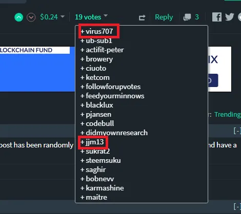 스팀잇에서보면 위의 화면처럼 나오지만 @jjm13의 경우 스팀잇에서는 보팅기여가 거의 없기 때문에 사실상 @virus707만 봇으로 보팅한것과 같습니다. 이 포스팅도 sct와 무관한 포스팅이었기때문에 적절한 예라고 생각합니다.