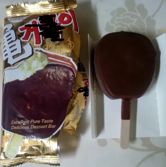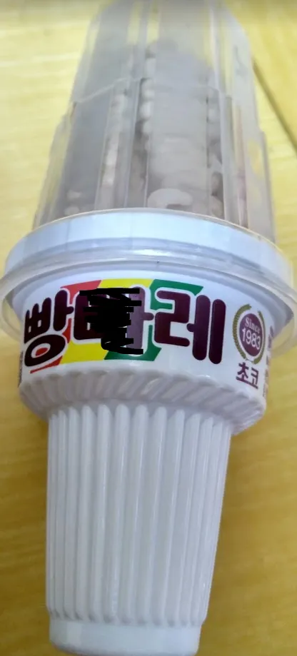한때 매일 먹을정도로 이 빵X레에 미쳐있던적이 있다. 오리지날은 바닐라고 나중에 이 쵸코맛이 생긴 것. 둘다 맛있는데 개인적으로는 쵸코맛이 더 맛있다. 구성은 사진과 같이 쵸코렛으로 이루어진 부분과 과자로 만들어진 손잡이 부분 2가지다.
