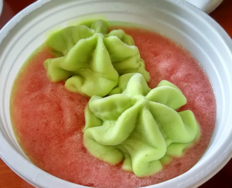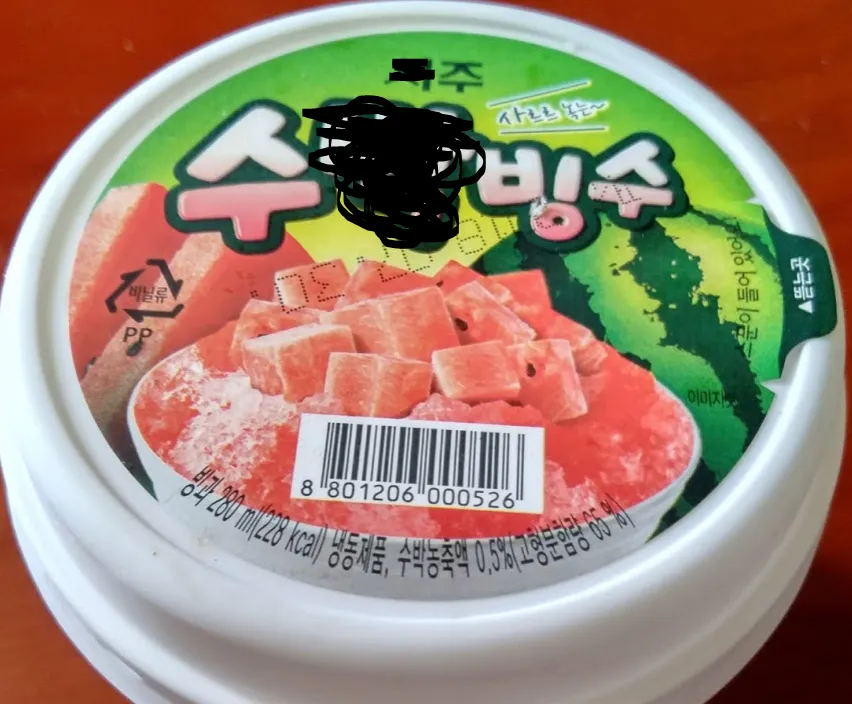 내가 아는 빙수아이스크림은 팥X수, 비X수( 비X빅 팥빙수 ), 망고X수, 그리고 이 수박X수 4가지인데 ... 앞 3개와 비교 자체를 할 수 없는 맛. 다시는 안사먹을듯