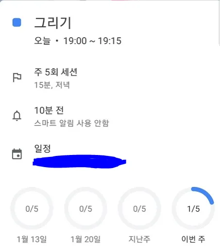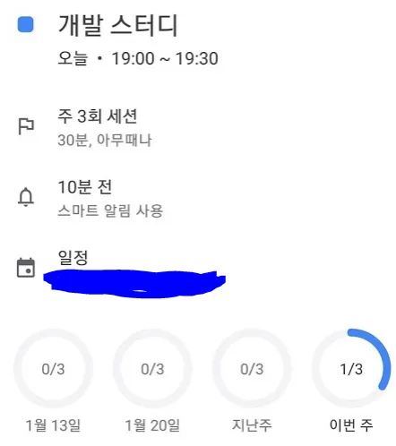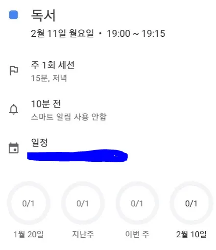 원래 가끔 일정이나 주변 사람들 생일정도를 기록해두고 사용했는데, 언제부터인가 목표설정이 생긴걸 봤습니다. 본김에 몇개 등록해놨는데, 매일 알림이 울려요.