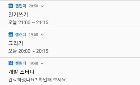 등록하고 나면 정해놓은 시간 혹은 그 전에 알려줍니다.