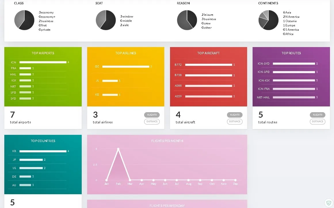 - 각종 순위 – 방문한 공항, 탑승항공사, 탑승한 기재, 노선