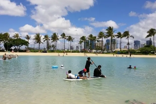 Lagoon in front of Rainbow tower, best for kids!