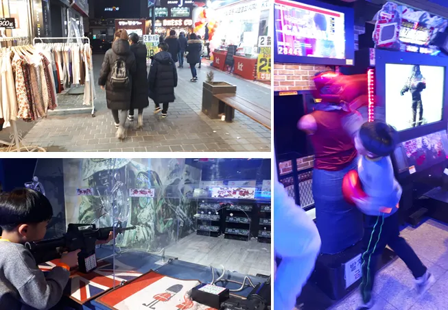 닭갈비 완판 클리어 후, 아이들 옷도 좀 사고, 오락실에서 게임도 하고...