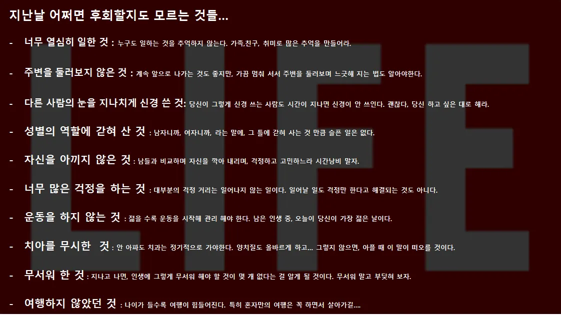 살면서, 또는 지나간 일을 돌아보면서, 미련이 남고, 후회스런