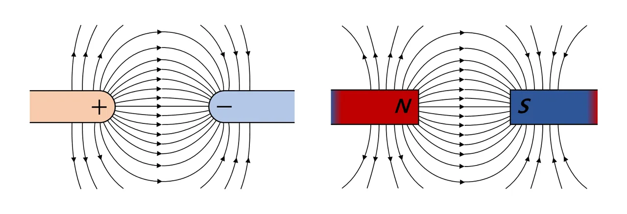 그리고 자네에게 상식이 조금 있다면, 전기력을 일으키는 물체에는 양(+) 또는 음(-)의 성질이 깃들어 있으며, 자기력을 일으키는 물체에는 북(N) 또는 남(S)을 향하는 성질이 깃들어 있어, 같은 성질의 물체끼리는 밀쳐내고 다른 성질의 물체끼리는 끌어당긴다는 사실을 알고 있을 것일세. 이렇게 직접 접촉 없이 공간을 가로질러 작용하는 힘이란 무척이나 특이한 현상이지.