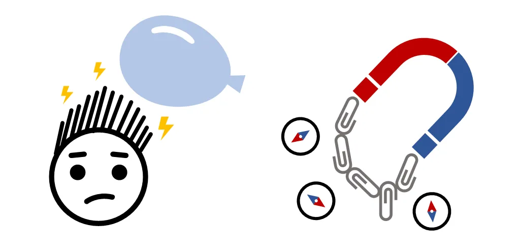 그래, 장(場, field)이라는 말이 어렵다면, 힘(力, force)이라는 말은 어떠한가? 아마 전기력과 자기력은 자네도 일찍이 흔히 경험해 보았을 것이라네. 통상 전기력이라 함은 그림1 왼쪽과 같이 풍선으로 머리칼을 띄우는 힘 따위를 이르고, 자기력이라 함은 그림1 오른쪽과 같이 자석으로 클립을 끌어올리는 힘 따위를 일컬으니 말이네.