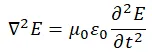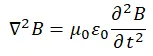 그리고 둘째로, 맥스웰 방정식이 도출하는 전자기파의 성질이 문제였네. 기억하는가? 나는 앞서 전자기파가 다음의 파동 방정식으로 기술됨을 설명한 바 있네. 또 이 파동 방정식을 통해 전자기파가 빛의 속도로 진행함을 알 수 있었고, 전자기파가 곧 빛임을 통찰할 수 있었음을 설명하였지.