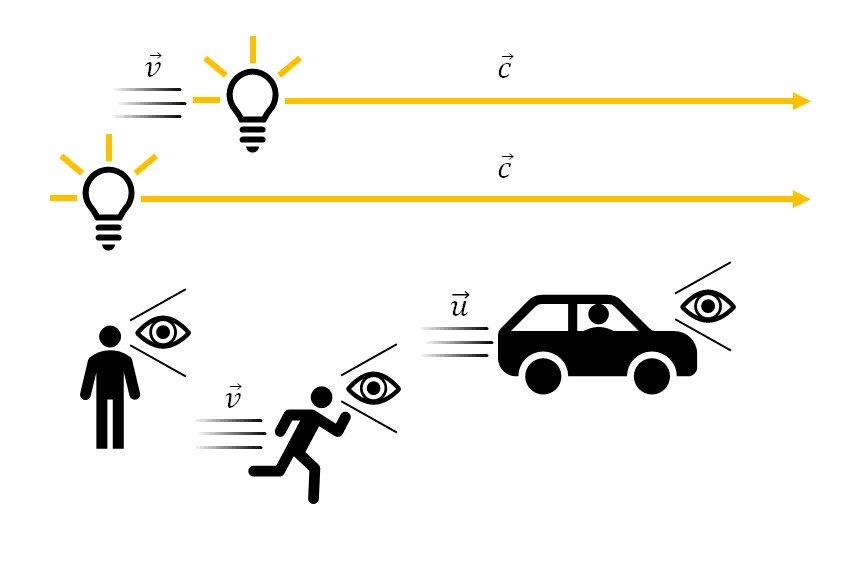 - 진공에서 빛의 속도는, 관찰자 또는 광원의 상대적 움직임에 관계없이, 모든 관찰자에게 동일하다. (광속 불변의 원리)