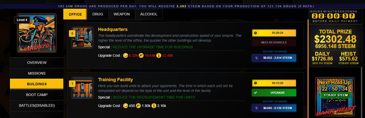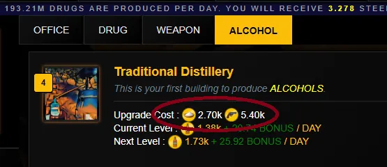 드럭,총,술 모두 제일 아래 창고가 있는데 창고 바로 위에 있는 가장 가성비좋은 테크를 현질로 구매해야합니다
