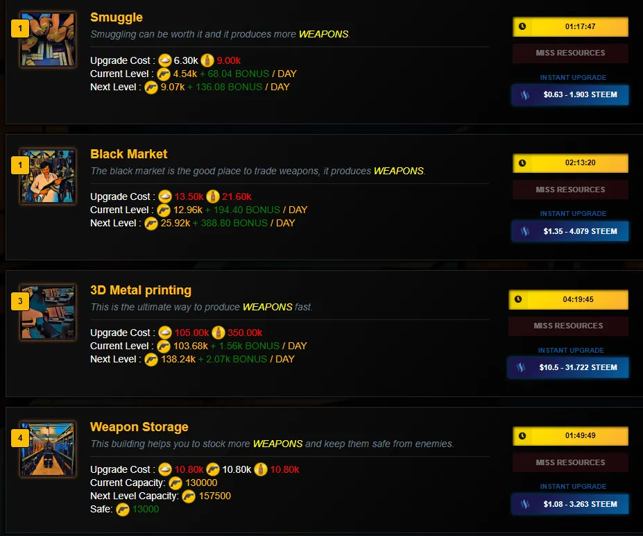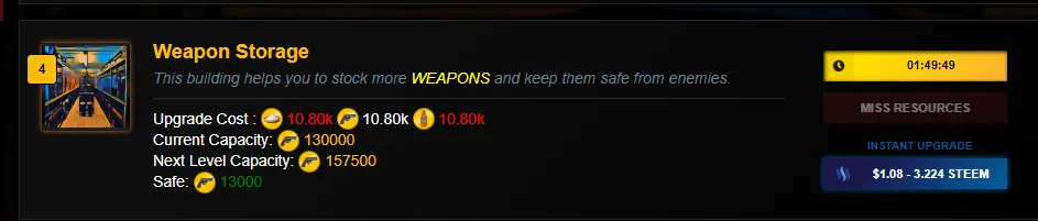 다른 자원을 업그레이드하기위해서 100k가 필요한데 창고보관량이 10k면 아무것도 업을 시킬수없는거죠
