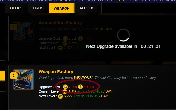 레벨업을 하면 드럭생산량이 증가하는 구조입니다.