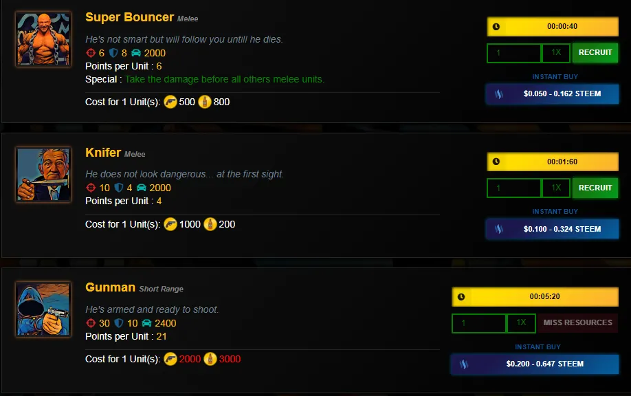 현재는 용병만 고용할 수 있고 미구현상태입니다.