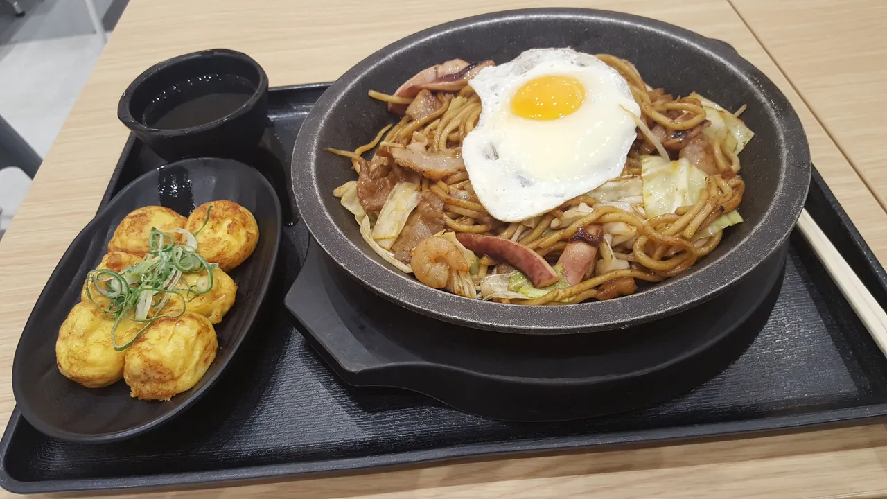 And while looking around the shopping mall in Odaiba, I got hungry. So I ate takoyaki and grilled iron plate.